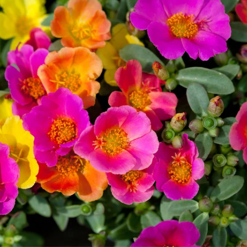 Portulaca produces a stunning carpet of vivid blooms in a mix of red, yellow, orange, pink, and white. Its succulent foliage thrives in hot, dry conditions, making it an excellent choice for water-wise gardens and sunny outdoor spaces.